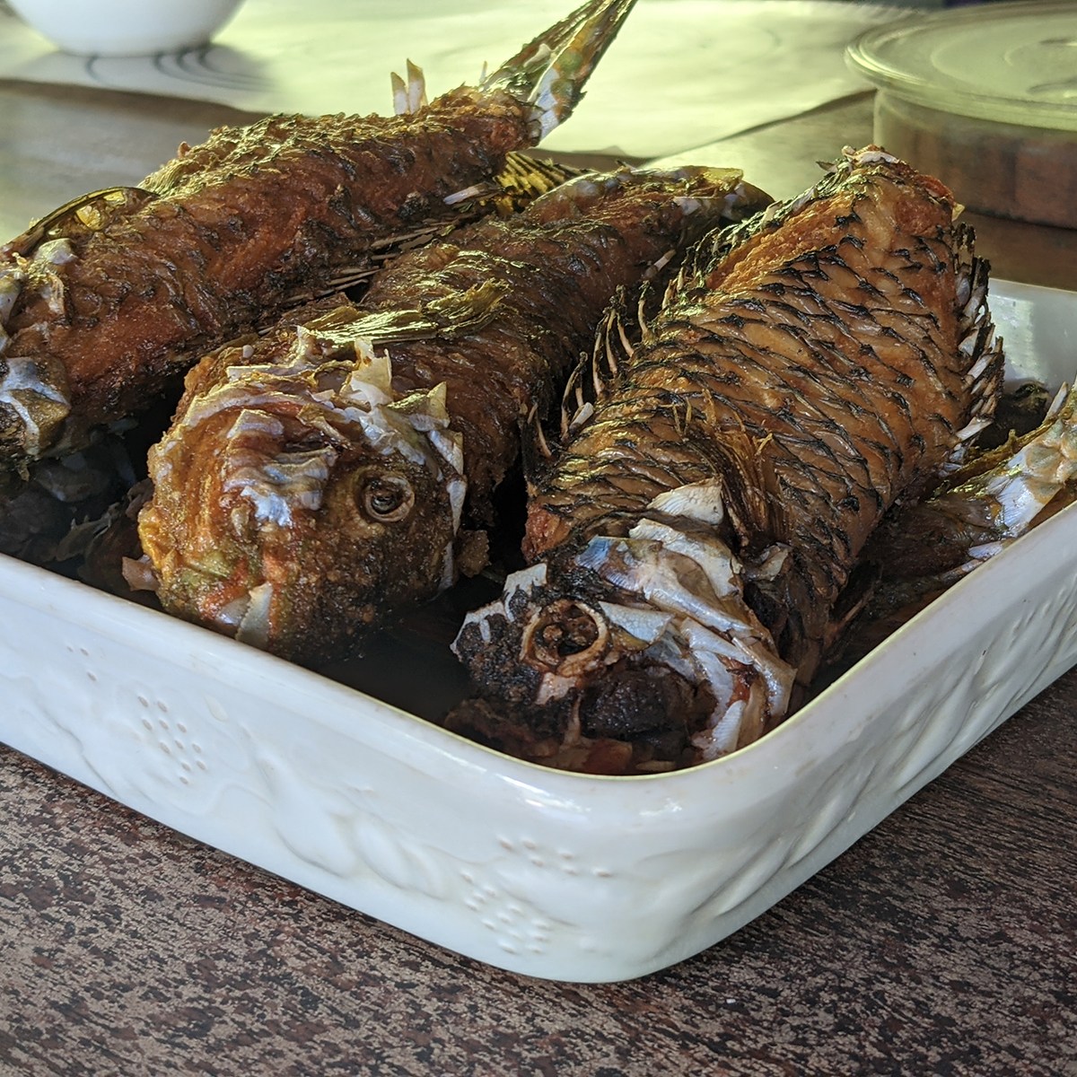 “Good catch,” he nods as he maneuvers fish out of our net and into our bucket. “Sam will be happy.”