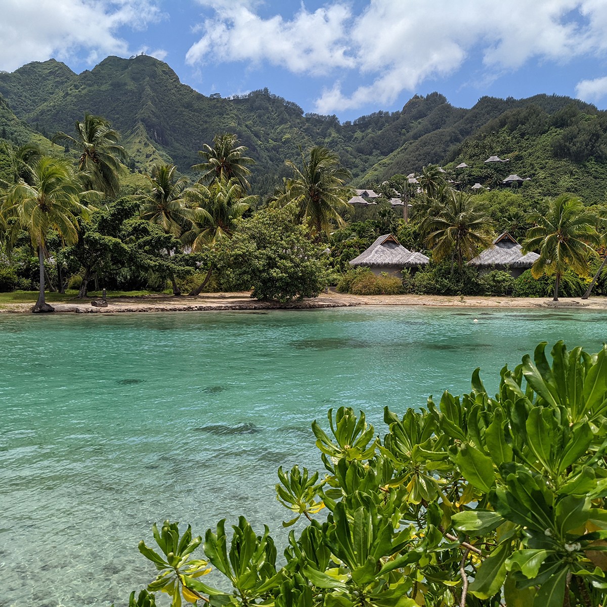 As we distance ourselves from the shoreline, it occurs to me that I can’t recall having seen water quite so clear, or that captured the sunlight just so, in any sea in which I’ve ever paddled or swam: not the Caribbean, not the Aegean, not the Andaman, not anywhere. Looking back over my shoulder, I see mountains reminiscent of Kauai’s Nā Pali coast, but somewhat more inviting and even, yes, more lush. “Do you ever get tired of the beauty of your home?” I ask Manu. “Never,” he responds unhesitatingly and with a real, not imagined, sense of wonderment in his tone. “Every day is amazing.”