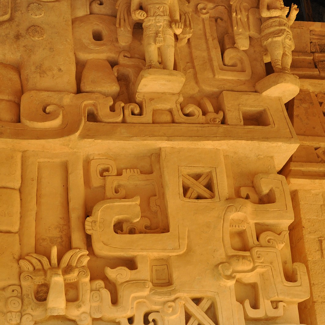 Dry off and head north (looping clockwise around the outskirts of Valladolid) about half an hour to Ek’ Balam, bearing in mind its closing hours, as I mentioned above. Once you’ve made it past the ticket window here, your day’s pace begins at last to slow. On its small, isolated compound, Ek’ Balam offers for your free-ranging perusal a dozen or so major structures, the most prominent of these being the Acropolis, which features the most intricate and best-preserved / restored stucco work I’ve seen at this region’s sites or Tikal. To sit atop the Acropolis as the late-afternoon air cools and the sun drops in the west is to feel a rejuvenation that one might be inclined to attribute to the area’s reputed ancient mystical properties. In two visits to Ek’ Balam — both during holiday seasons — I’ve encountered a total of maybe thirty visitors, including the seven in my groups. If you make it here, it’s certain to be a highlight of your trip.