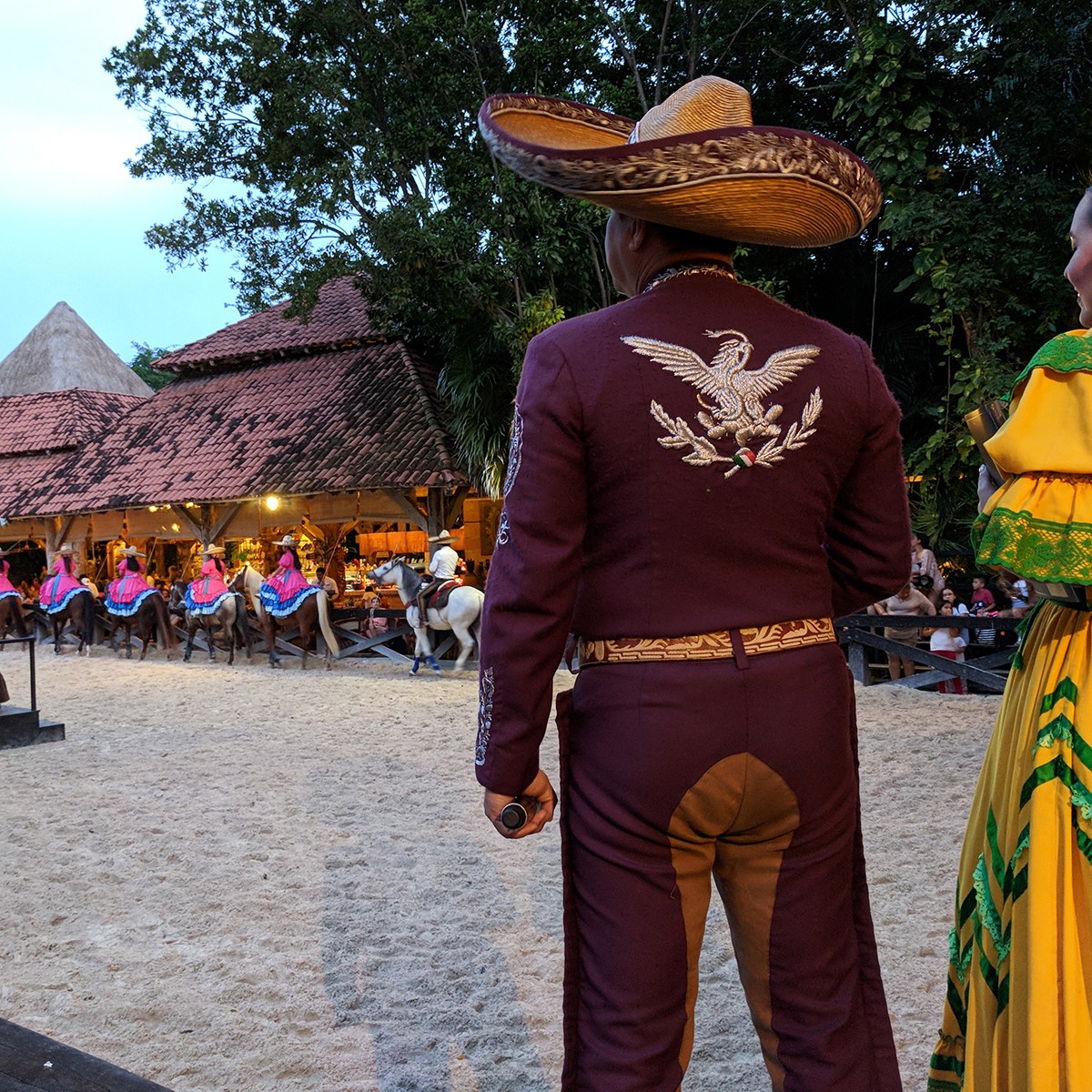 • A visit to Xcaret culminates in the evening’s marquee show, the “Mexico Espectacular.” Again, perhaps I was snobbishly especting really good community theatre, but this show was, well, espectacular. Sure, the Pre-Columbian segment could use some fine-tuning (The reenactment of Mayan “basketball” will be of interest to anyone who has visited the ancient ballcourts, but do we need to watch celestial fireball hockey for more than a minute or two?), and yet, even knowing next to nothing about the various Mexican states, I got chills throughout the second half when different pockets of the audience cheered as the traditional clothing, music and dances of their respective homelands were showcased in succession. In fact, I’m getting goosebumps recalling it right now. The dancing, while ensembles were perhaps imprecise here and there, was very good; the solo singers were absolutely top-notch; and the overall production quality, although expectedly more Atlantic City or Branson than Broadway or Vegas, left little to be desired.