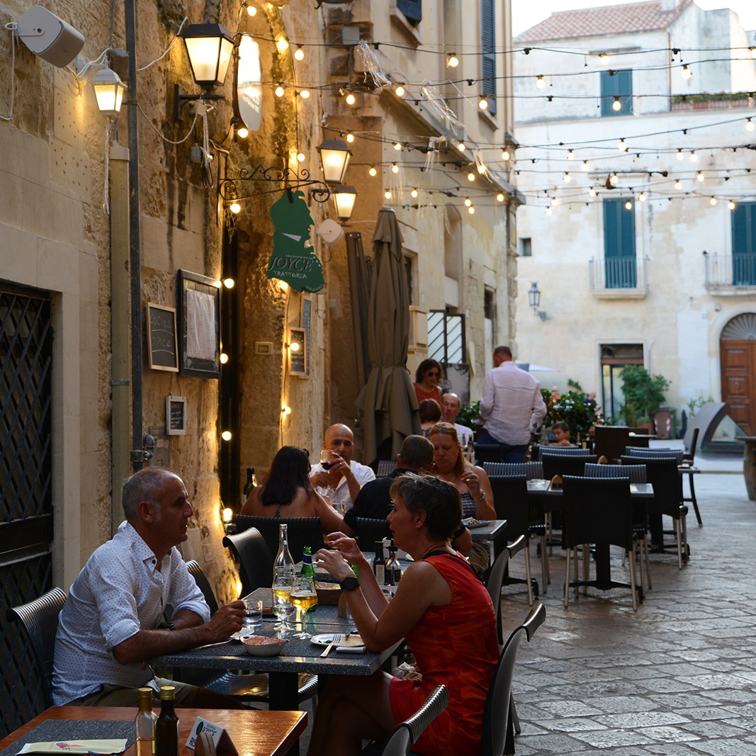 Lecce has numerous listed attractions, all of them worth visiting: impressive government buildings, breathtaking churches (especially the Doumo and Basilica di Santa Croce, most economically visited on the joint ticket that includes all the major churches), charming parks and piazzas, sturdy city gates (such as Porta Napoli and Porta Rudiae), and even a Roman amphitheater. But the best thing to do in Lecce is simply to wander around – aimlessly, if your inner planner can bear it – and see orecchiette (little ears) pasta being rolled in the window of trattoria, a negroamaro (black-bitter) being poured at an outdoor bar, or a Pugliese couple, whether young loves or lovers young at heart, sharing a gelato on a bench. Of course, the quintessentially Italian wandering experience here is known as the evening passeggiata (which I’d first experienced many years ago in Lucca), a pre-dinner stroll the locals take along Via Vittorio Emanuele II between Piazza del Duomo and Piazza Sant’Oronzo.