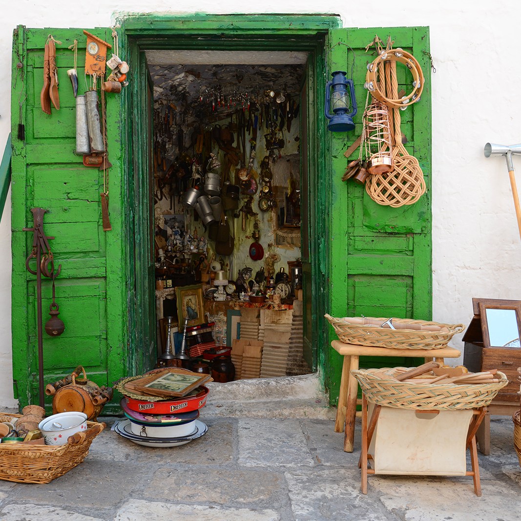 Much of the appeal of Cisternino (little cistern) stems, in fact, from the town’s diminutive size.Its centro storico covers an area just over five acres, allowing a thorough exploration in a relatively short visit started from the parking stalls on Via San Quirico where Chiesa Madre San Nicola offers a dignified welcome to the old town. On the drive from Ostuni and Cisternino, set back from the rock walls that line the endless olive groves, I began to notice small buildings with conical roofs, some in immaculate condition and some in grave disrepair, most not much bigger than a shipping container. These are trulli (from the Greek word for cupola), mortarless limestone dwellings unique to this region. Homes to peasant laborers from the 14th through much of the 20th century, today they house middle-class families, luxury B&Bs, chic bars and other enterprises. Nothing you do on your visit to Puglia will be more pugliese (Apulian) than eating orecchiette con cime di rapa (broccoli rabe), a regional specialty, in a trullo.