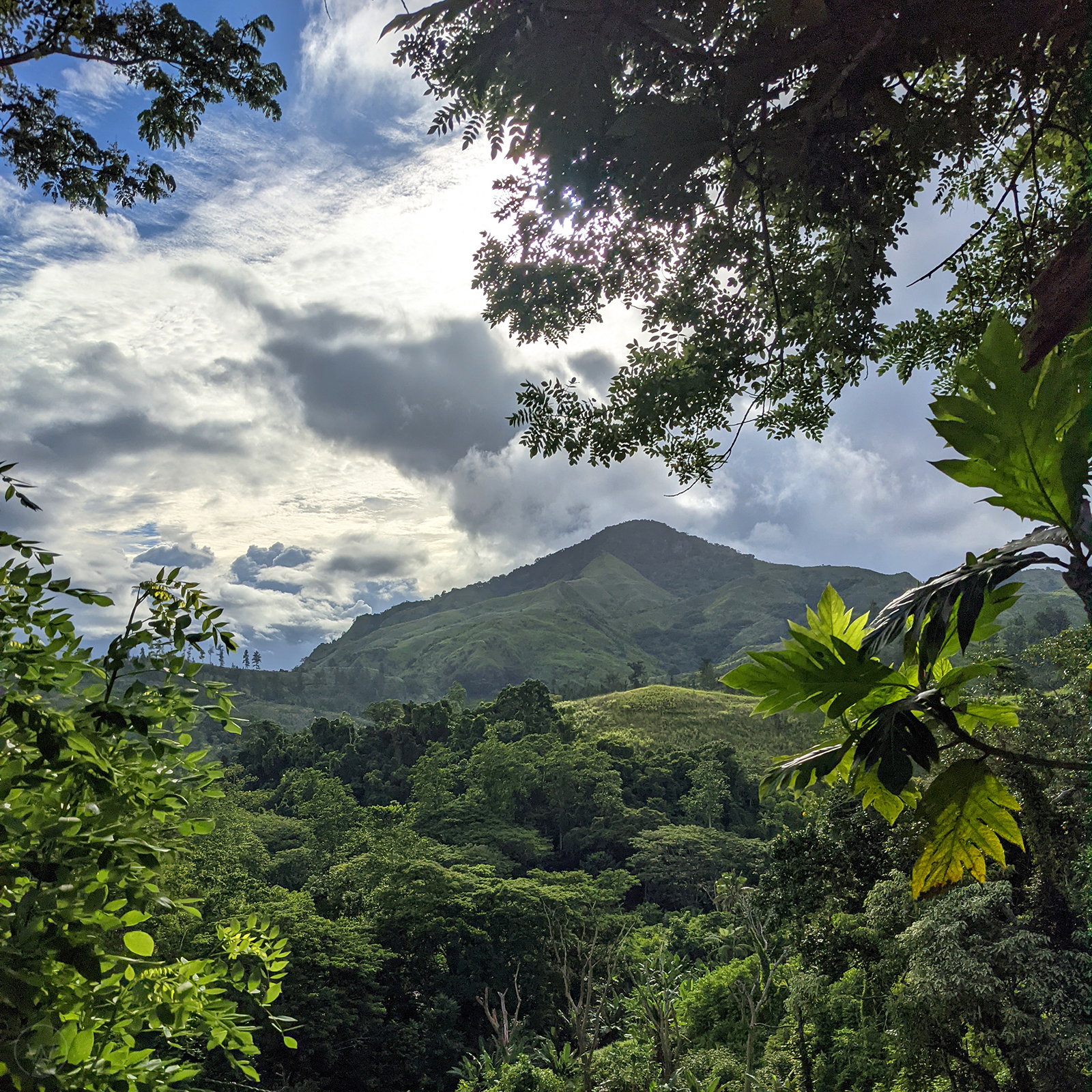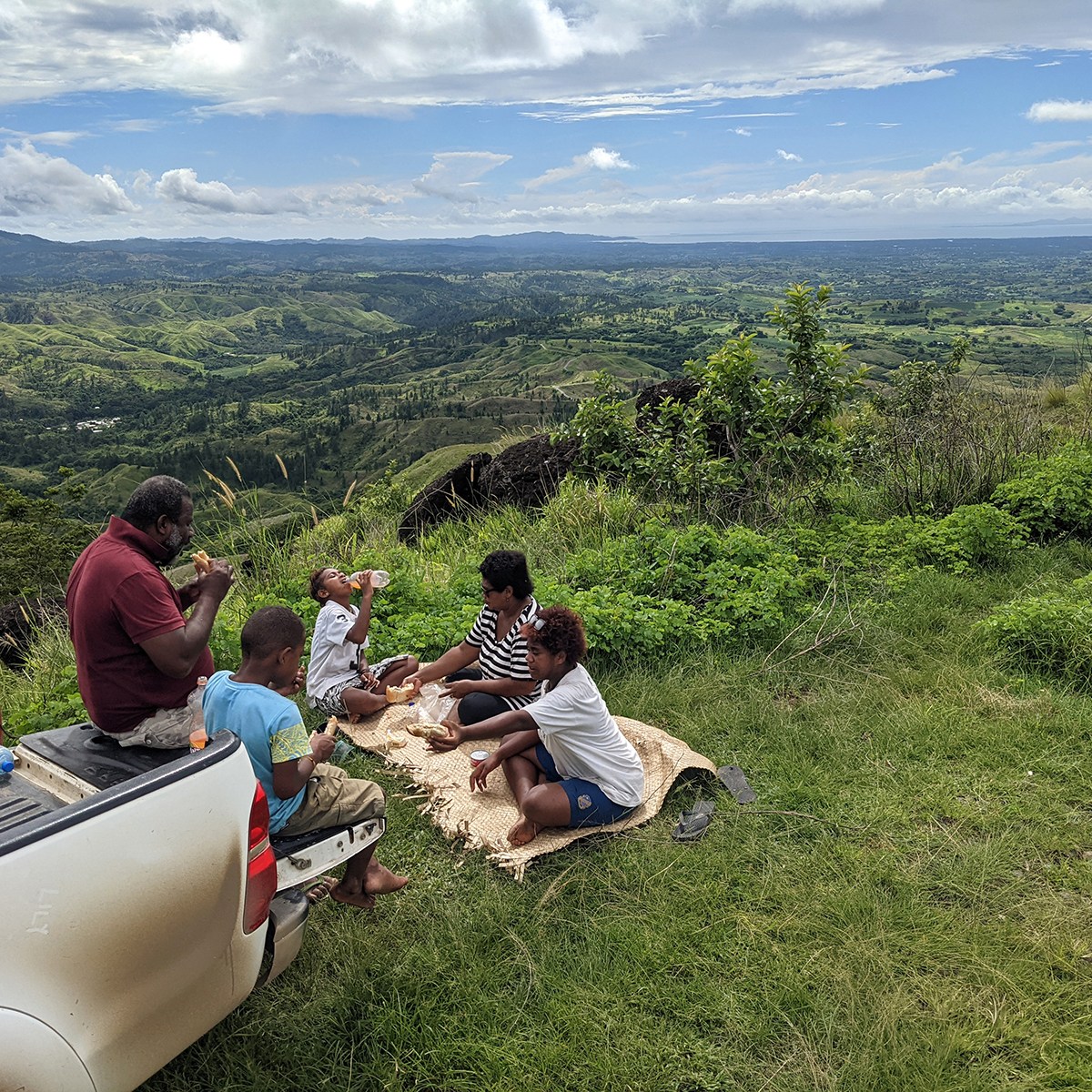 Wending its way eastward at sea level through small farms and villages, passing the occasional mosque, cemetery or minimart, it didn’t take long for the asphalt to yield to dirt. Once buildings had fully yielded to trees, the incline increased and I soon found myself at the first scenic pullout, near Heavens Peak, an escarpment maybe 200 meters above sea level from which I shared sweeping views of Nadi Bay with a family picnicking from the back of their truck. Perhaps in a gesture of compassion prompted by a quick comparison between their burly Tacoma and my petite putt-putt, they also asked that I share their loaf of bread, a generous invitation that I didn’t hesitate to accept.
