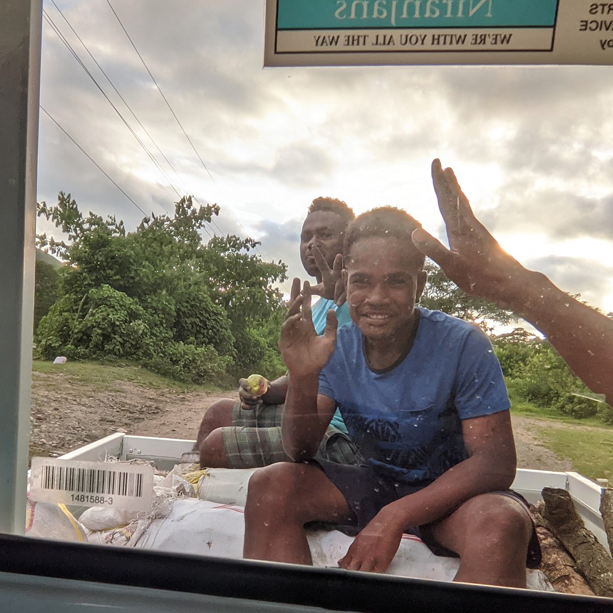 Warmed and culturally emboldened by this exchange, as I continued upward and eastward I began to gesture to those walking roadside in my direction to hop in the back. Several responded with wide smiles and, together with whatever load they had in their arms, jumped eagerly into the bed of the truck, then after relatively short distances tapping on the cab window or roof to signal their end station, although few of these had any landmarks (such as a building or a path forking from the road) that I could discern in the dense jungle.