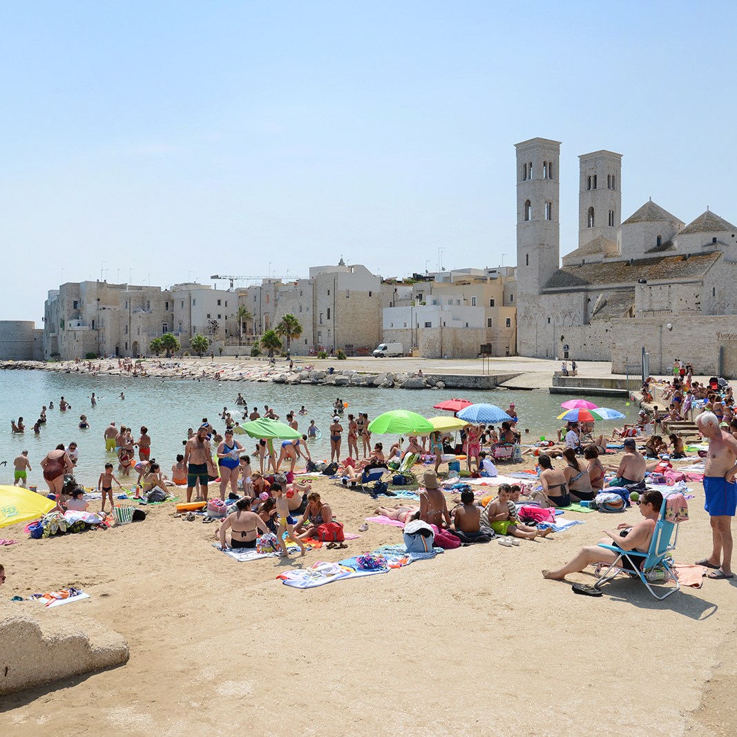 Much smaller than its neighbors Monopoli to the south and especially Bari to the north, Polignano and its fun-sized centro storico can be fully enjoyed in just a few hours (although you’ll want to stay longer), including a visit to the “downtown” beach, Lama Monachile. If you prefer something with a little more sand and fewer rocks and visitors, there are numerous, inviting beaches in the next few kilometers to the north, including one overlooked by a Romanesque-Baroque abbey named after Polignano’s patron saint, San Vito Martire.