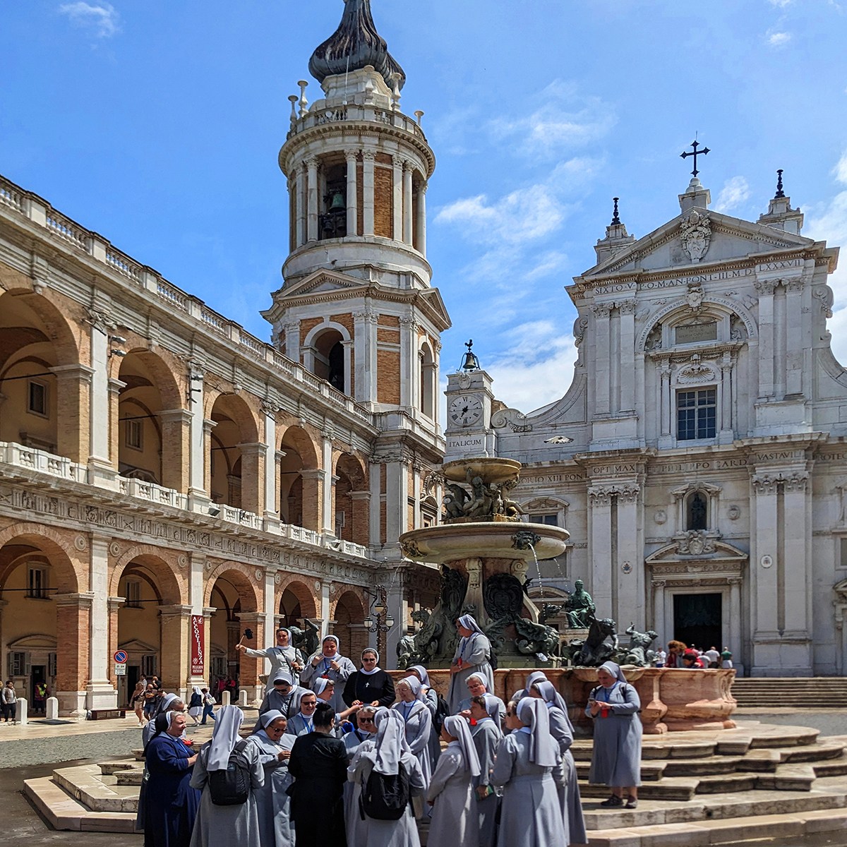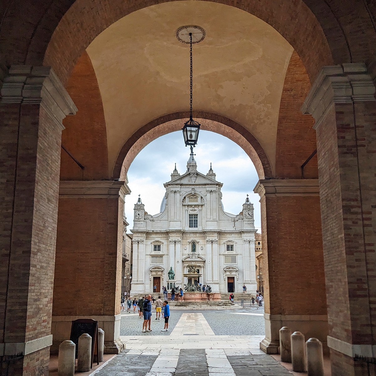 Within minutes of leaving our lodging in Potenza Picena, we parked in the long morning shadow of Loreto’s hill, and the city appeared to us at first like so many towns of the Marche: perched on a crest, its walls punctuated by gateways and its alleys winding upward toward the obligatory piazza principale (main square). But Loreto’s square hums with centuries of pilgrims’ prayers more than its stones clatter from hooves and heels, because the Basilica della Santa Casa rises at its heart, a monument to hope and mystical conviction.