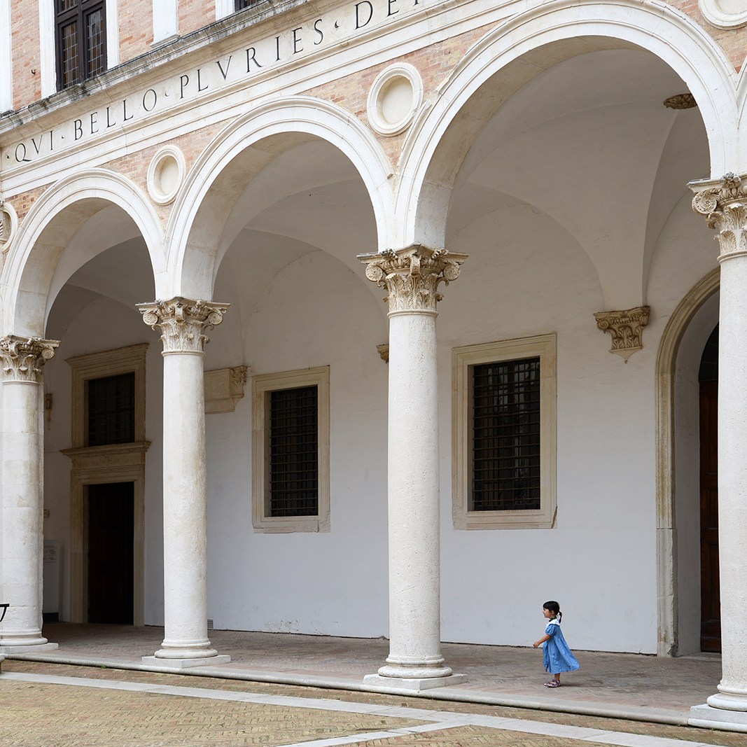 Inside, Urbino, while not exactly untouched — there are teens jamming with bluetooth earbuds, restaurateurs accepting Apple Pay for coniglio in porchetta (roasted rabbit), a security camera uninterested in three college students eating gelato in a vaulted arcade — is, in fact, unchanged in its essence. The Renaissance did more than leave its fingerprints here: It birthed this city whole. The centerpiece is the Palazzo Ducale of Federico da Montefeltro, whose sheer willpower transformed Urbino into a rival of Florence, and though museums and placards now catalog his ambitions, the building itself speaks most eloquently: airy courtyards, elegant arches, staircases coiled with logic and grace.
