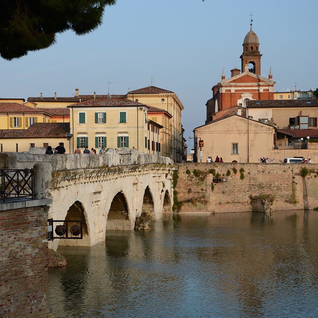 Two structures that bookend the old town teach Rimini’s Roman roots more authoritatively than any textbook. First, the triumphal Arco di Augusto still marks the southern gate of the city after more than two millennia. Then, to the north, is the Ponte di Tiberio e di Augusto, a bridge begun under Augustus and completed by Tiberius in the first century, its five arches stretching across the Marecchia River with a glow warming in the setting sun. Locals sauntered across, their hands skimming the balustrade and their feet traversing the centuries.
