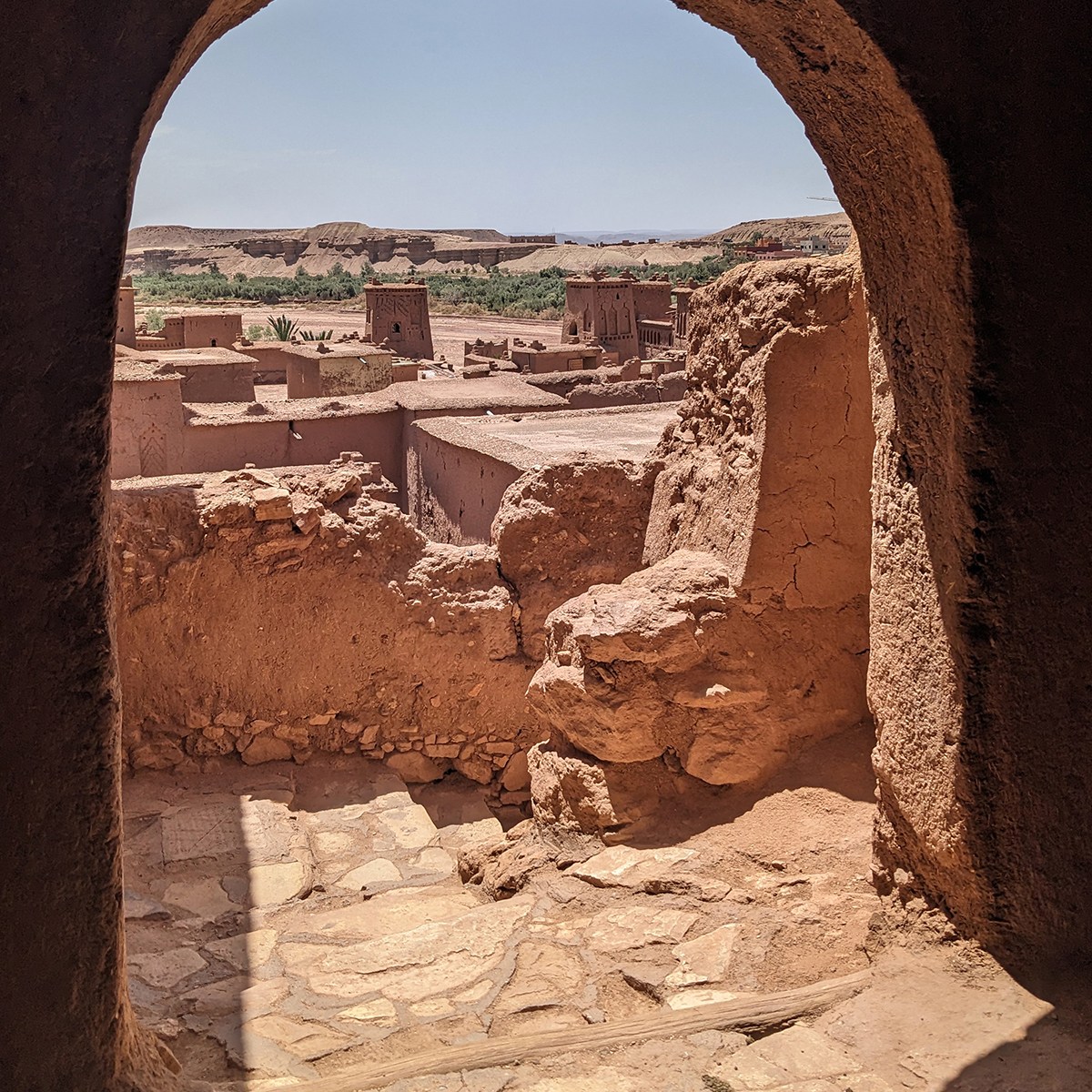 I thought this an appropriate opportunity to introduce our driver to “Rock the Casbah,” by British punk-rockers The Clash. He nodded along with a smile, and after a few rounds of the chorus was hum-singing along, “…roque ze kasbah, roque ze kasbah…” It may also be an appropriate opportunity, as we near our tally of one thousand of them, to explain to you what exactly a “kasbah” is. Common to several North African countries, kasbahs (which translates most directly into English as “fortress”) are fortified citadels built from mudbrick, clay and stone to protect communities and trade routes while housing rulers and their families, their high walls, corner towers and shaded alleys balancing defense with desert cooling. Historically, kasbahs anchored political power and caravan trade, blending Amazigh resilience with Islamic artistry; today, they embody the region’s architectural ingenuity and cultural legacy, as we’d come to better appreciate on our (paused) drive.