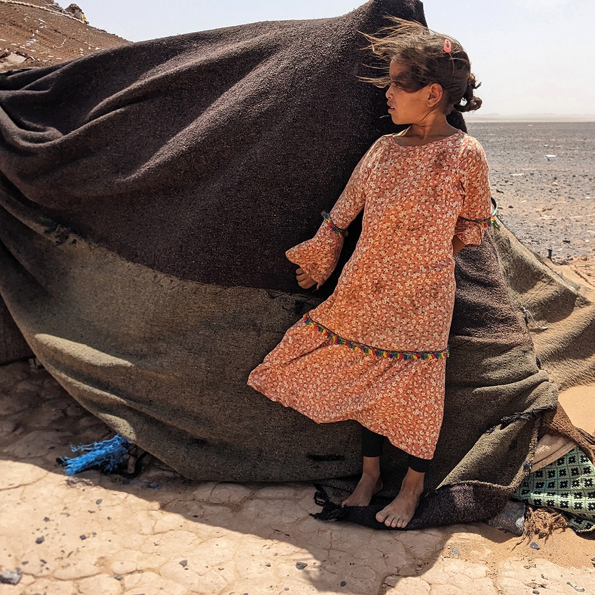 Less quiet was our ride on quads across the dunes, the irreverent roar of engines replacing the solemnity of millennia-old sands while glimpses of the Algerian border just a few kilometers to the east appeared intermittently among the wave-like crests. Yet, it was laughter and exhilaration shared with my boys, rites of passage perhaps just as vital. Our time here passed in a balance of thrills and reflections. We took tea with a nomadic family, their home one of a couple dozen tents spread across Dayet Srji, an ancient lakebed strewn with meteorite pebble too hot for our hands to touch but on which their radiant children walked barefoot. We visited one of those beckoning fossil quarries and, after brief yet obligatory negotiation, took home some silent stories of life before time. The hypnotic rhythms of a private Gnaoua music performance wove a connective thread to North Africa’s rich spiritual heritage.